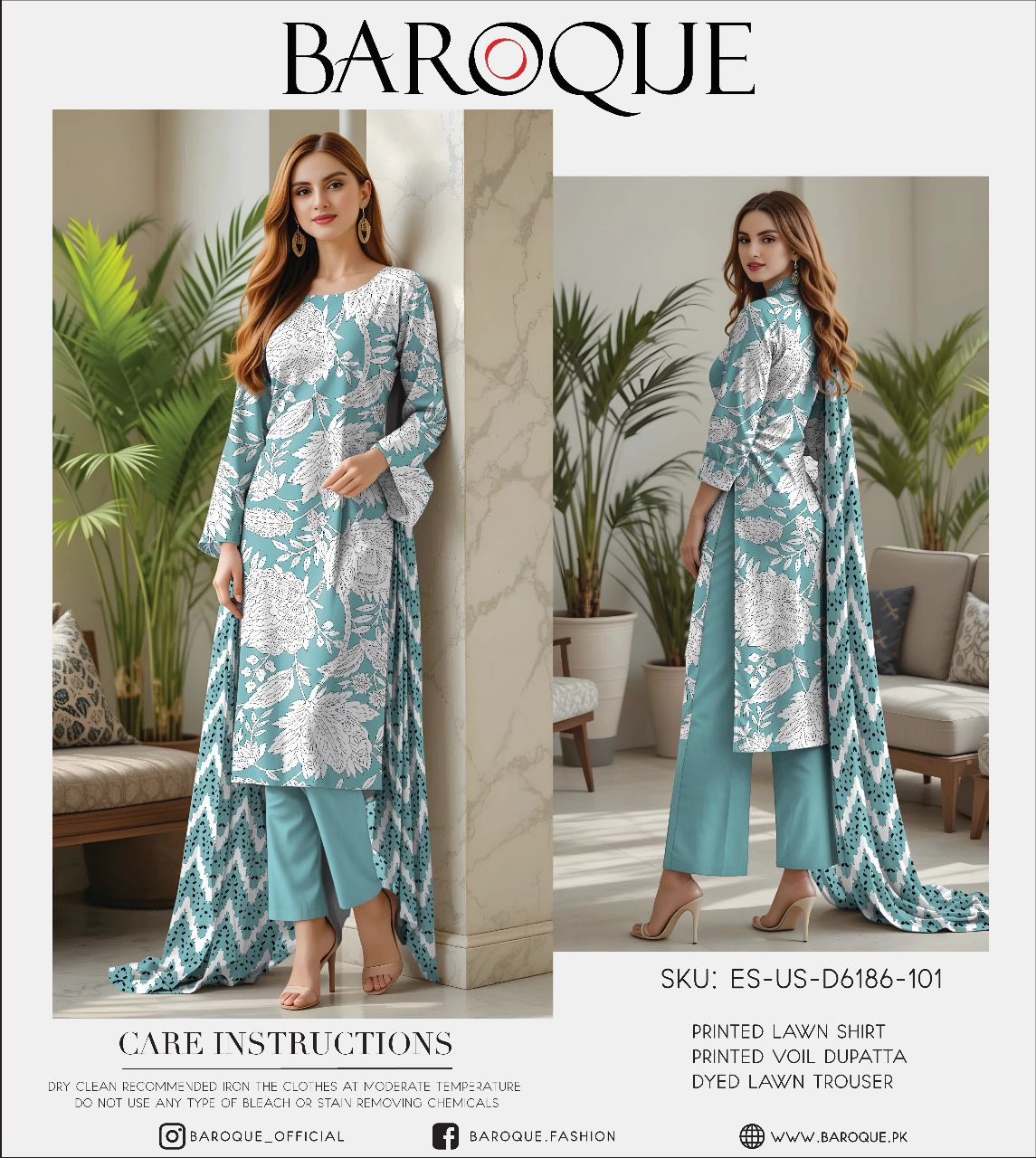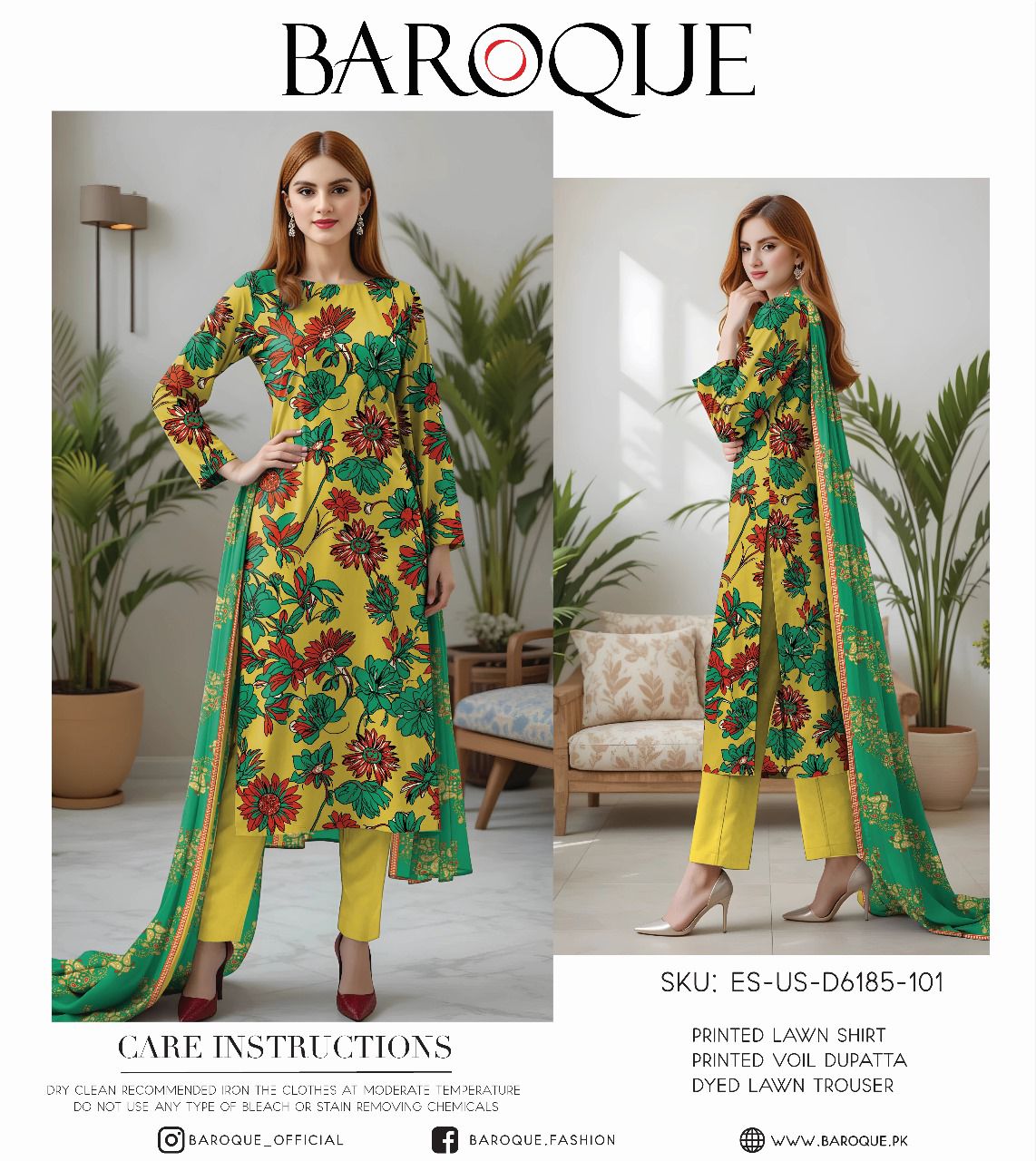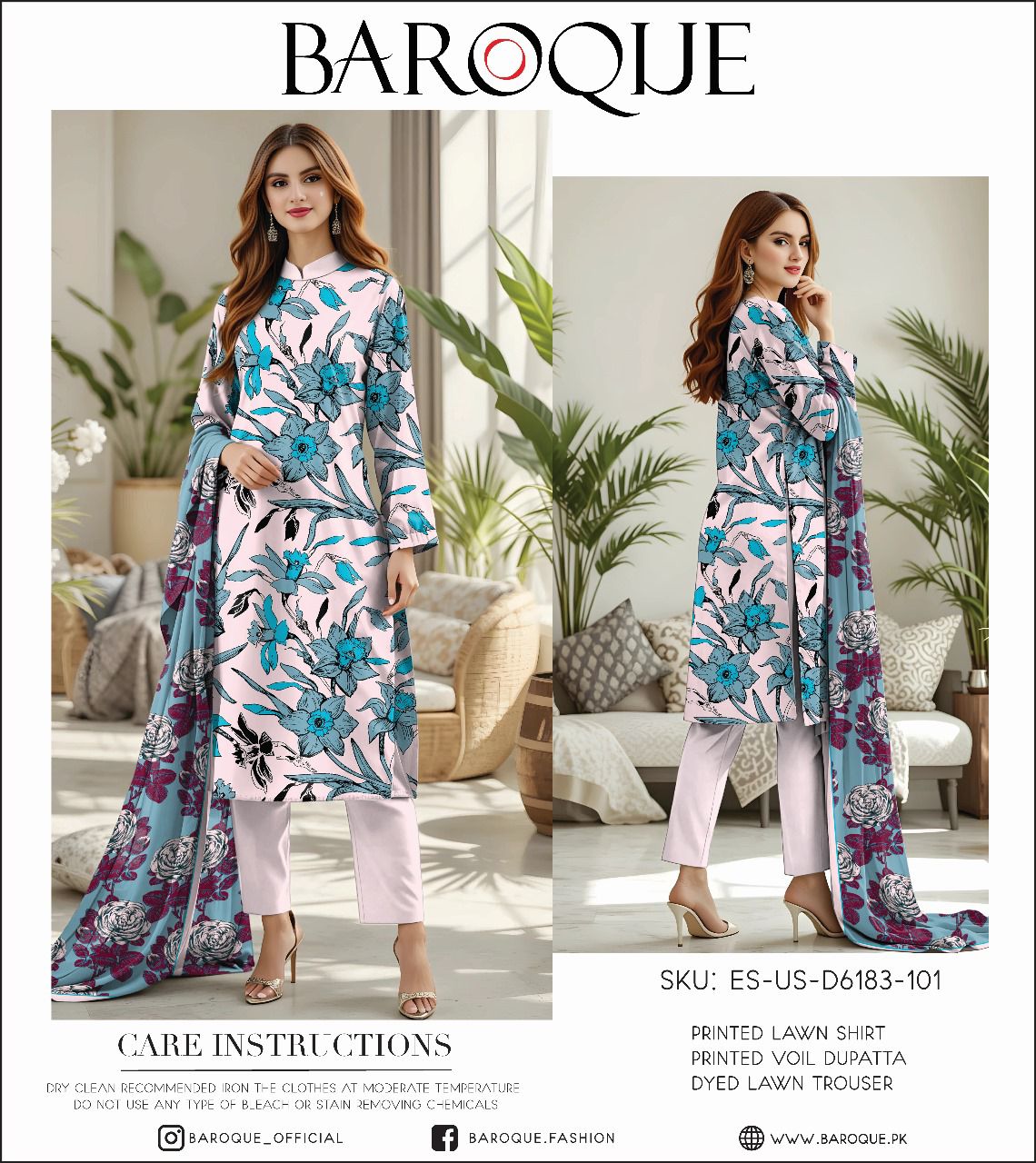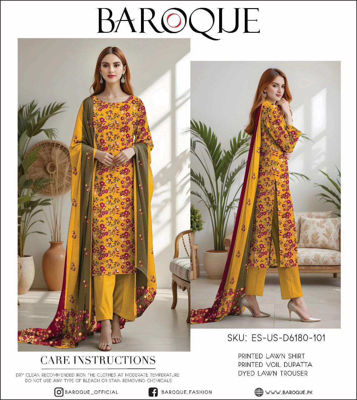 • Shirt: Printed Lawn – Soft, breathable & designed with signature Baroque artistry