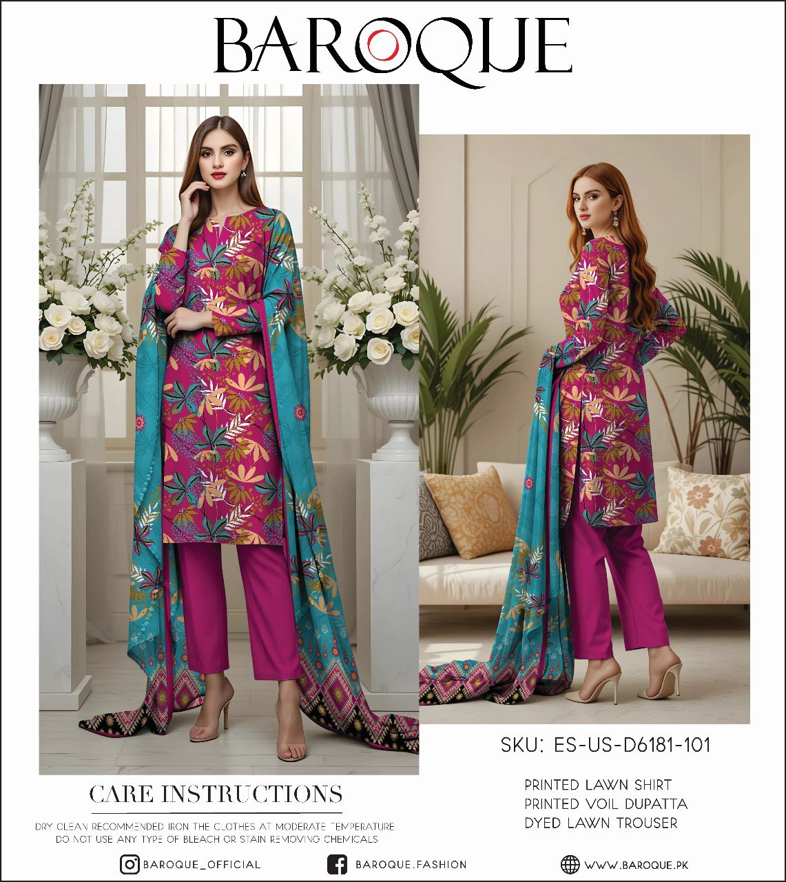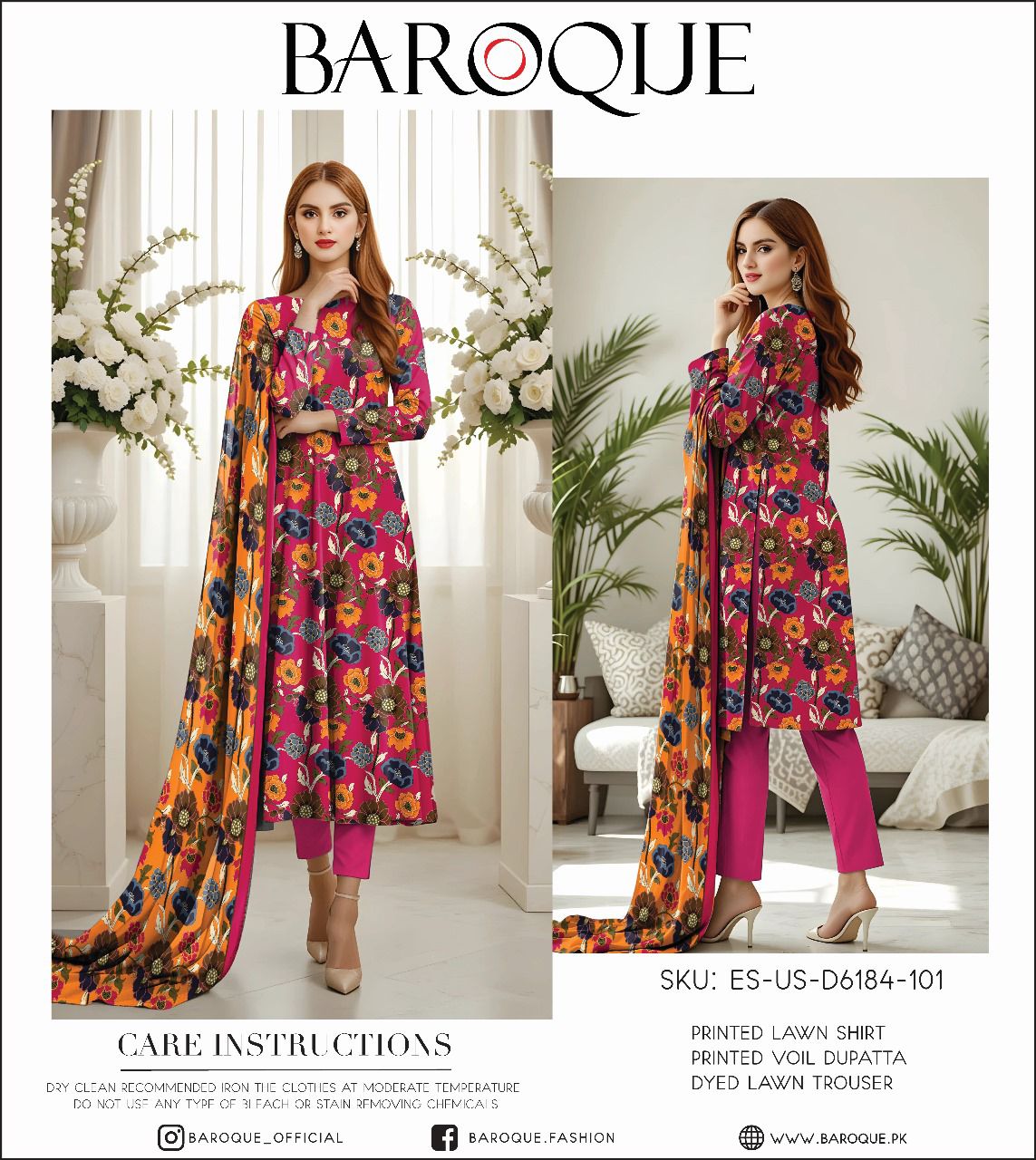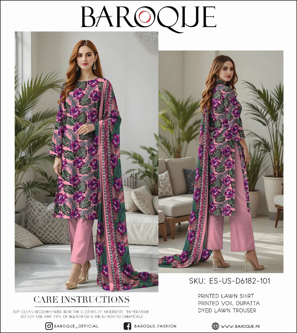 Embrace the charm of summer with Baroque’s Original 3PC Printed Lawn Collection – where timeless prints meet unbeatable comfort.