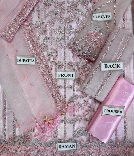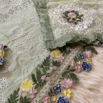 Lawn Fully Heavy Embroidered Schiffli Front with Multi-Color Chikankari Center & Daman Border + Heavy Embroidered Neckline on Fabric