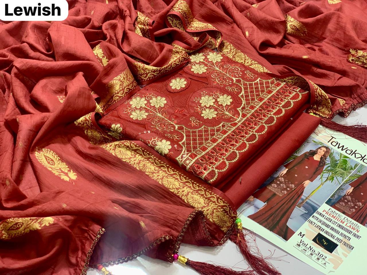 Celebrate this Eid in elegance with Tawakkal’s Premium Air-Jet Lawn Cotton suits from Volume 2 & 3. This stylish 3-piece ensemble is crafted with detailed embroidery and premium fabric, designed to elevate your festive look.